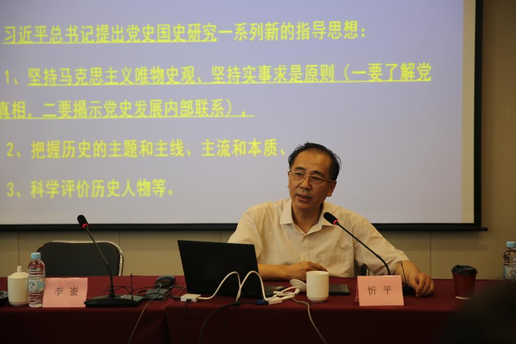 忻平教授作了《认真学习四史,牢记初心使命》的辅导报告。忻平教授详细梳理了四史的历史脉络和重要联系,全面讲解了学习党史、新中国史、改革开放史、社会主义发展史的必要性和深刻内涵;“四史”贯穿中国共产党人的初心和使命,是当代中国共产党人为实现“两个一百年”奋斗目标而不懈努力的宝贵财富和精神动力。忻平教授通过一系列生动案例和历史素材阐明了上海作为中国共产党的初心之地、创新之地,将红色文化与时代精神相结合推进改革开放再出发的时代使命。最后,忻平教授指出要注重党史中的必然性和偶然性,学会历史思维,培养历史眼光,增强历史担当,不断深化对“不忘初心、牢记使命”的认识和理解。