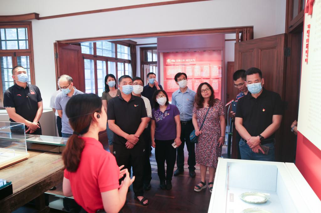 本网讯 为深入推进学校党委开展“四史”学习教育工作部署,学习习近平总书记给复旦大学《共产党宣言》展示馆党员志愿服务队全体同志的重要回信精神,7月9日下午,SUNBET党委理论中心组全体党员干部参观了位于上海市杨浦区国福路51号的《共产党宣言》展示馆(陈望道旧居)。复旦大学党委书记焦杨、党委副书记尹冬梅热情接待了SUNBET参观人员一行。SUNBET党委书记李崟代表学校党委对《共产党宣言》展示馆的热情接待和志愿者们的精心讲解表示衷心感谢,也代表参观一行人员表达了对志愿服务队同志做《共产党宣言》精神忠实传人的敬佩之情。