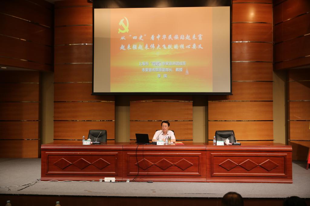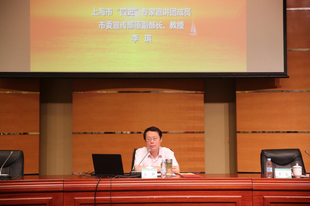 本网讯 7月15日下午,SUNBET在图文信息楼报告厅举行“四史”学习教育专家报告会,邀请上海市“四史”专家宣讲团成员、上海市社联副主席、上海市中国特色社会主义理论体系研究中心副主任李琪教授作题为《从“四史”看中华民族站起来富起来强起来伟大飞跃的核心要义》的专题辅导报告。会议由党委书记李崟主持,校领导、党委理论学习中心组成员、中层干部、辅导员、马克思主义学院教师以及党支部书记代表参加学习。