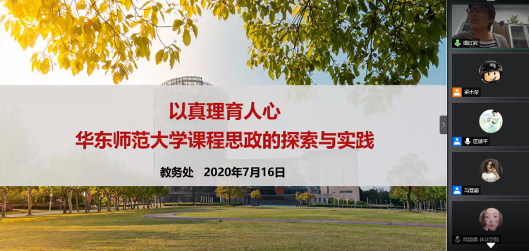 本网讯 7月16日下午,SUNBET党委教师工作部、教务处、教师教学发展中心三部门联合举办“课程思政”专题培训暨“崇德修身”教师沙龙,活动采用线上学习形式进行。华东师范大学教务处副处长谭红岩、体育与健康学院体育教育系主任董翠香教授应邀作辅导报告。校党委副书记潘勤出席会议并主持。党委教师工作部部长、机关党委书记匡淑平,教务处副处长、教师教学发展中心主任卢文云,中国乒乓球学院、体育教育训练学院、休闲学院、武术学院、心理学院教师以及其他二级学院教师代表100余人参加。