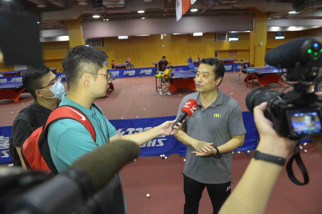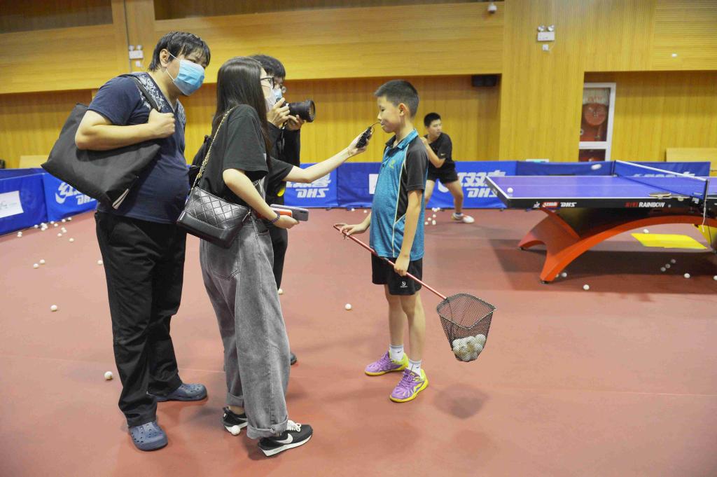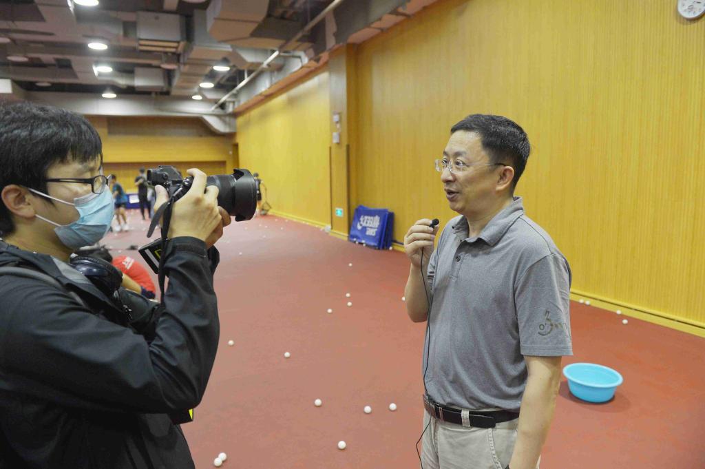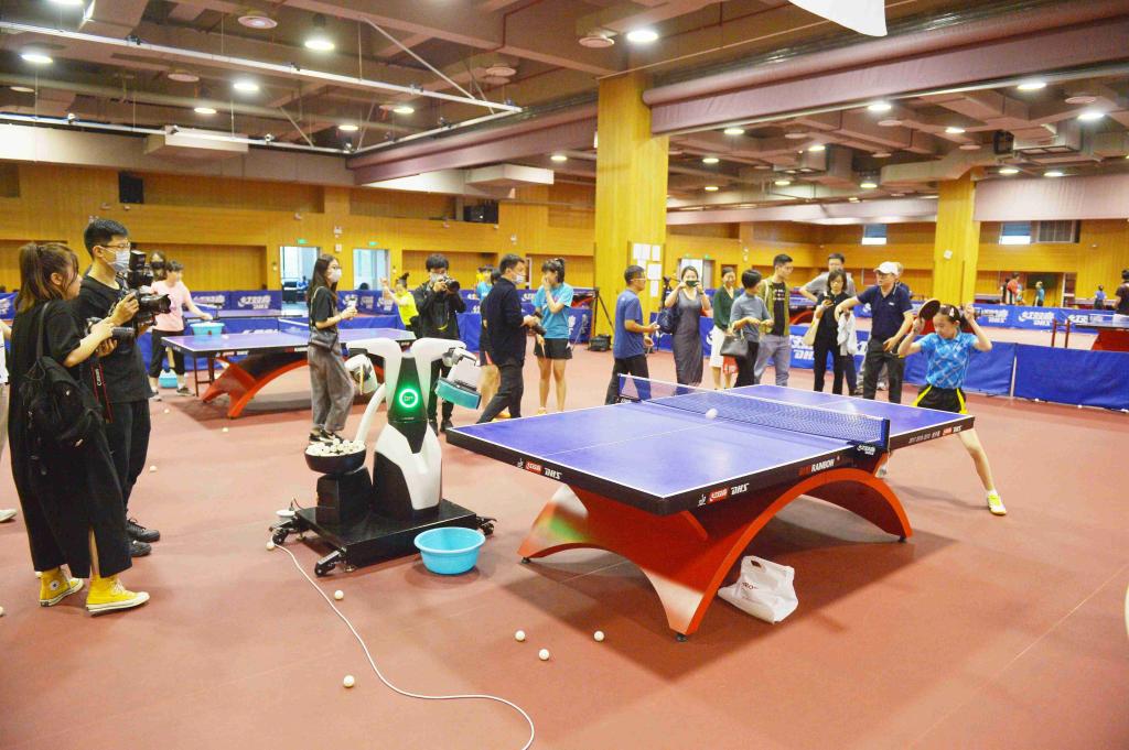 媒体记者们参观了乒乓球机器人实验室并观摩了学生训练。
