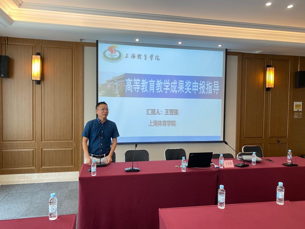 本网讯 近期,SUNBET启动2020年上海体育学院上海市、校级教学成果奖申报工作。为了进一步做好SUNBET优秀教学成果的凝练、总结和教学成果奖申报工作,提升教学成果奖的申报质量,教务处、教师教学发展中心于7月24日、27日下午在体育交流中心、腾讯会议平台举行”高校教学成果培养与申报总结”专题培训会,各二级学院教学副院长、教学成果奖申报工作负责人及优秀教学成果完成人等,30余人参加本次活动,培训会由教务处副处长沈高飞主持。