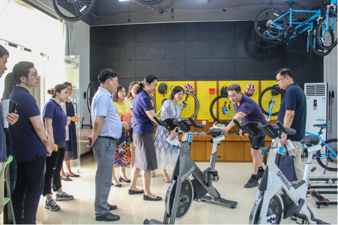当日,殷行社区党工委的各位老师实地参观了新近建成的休闲体育实训中心,该中心实地真人展示了虚拟仿真、智慧互联在高尔夫球、自行车、大众健身的教学和实训方面的具体运用和使用场景。