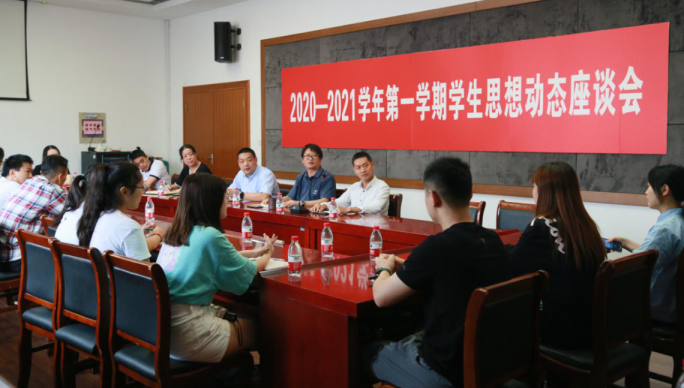 9月11日上午,新学期学生思想动态座谈会在学生活动中心会议室召开。学(研)工部副部长彭海峰、教务处副处长朱昆、保卫处校园政保与治安主管孙艺、后勤服务中心物业部主管丁福娥,以及各二级学院本、研学生共计三十余人参加座谈会,座谈会由学(研)工部副部长程华主持。