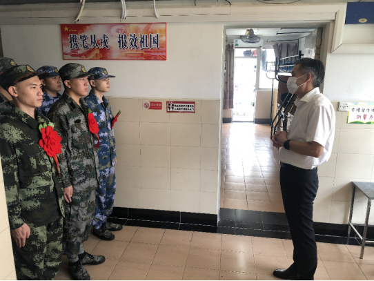 党委副书记、副院长陈晓峰首先对新入伍的学生表示了祝贺,对新兵的积极态度和昂扬的精神面貌进行了肯定。他指出,今年在疫情防控特殊的时期,虽然没有隆重的欢送仪式,却依然充满温情令人难忘。他寄语入伍新兵将满腔的爱国热血投入到军事训练和作风养成中去,时刻秉承“身心一统、兼蓄竞攀”的校训,勇于战胜困难、战胜自己,以优异的成绩为母校增光添彩。