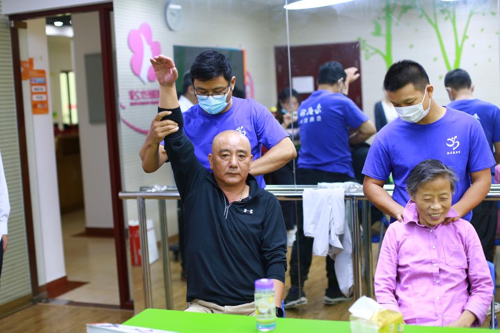 本网讯 9月18日下午,在武术学院党委书记刘明生带领下,“社区健康师”团队一行十余人来到五角场街道文化花园睦邻中心为居民提供健康咨询及健身指导,扎实推进“社区健康师”项目。