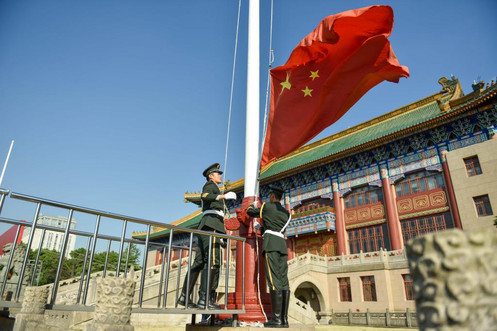 绿瓦楼雄姿巍巍,广场上国旗飘扬。典礼上,学校党政领导班子为新生代表赠予校徽,勉励新生们珍惜光阴、脚踏实地、严谨求实、爱国荣校。