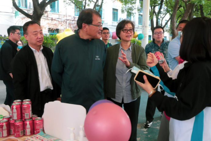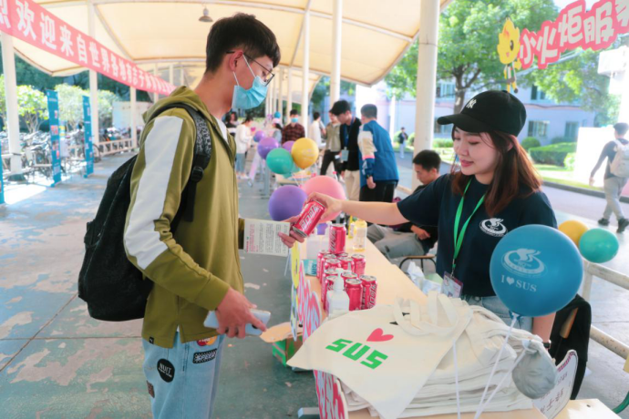 校学生会为新生准备的各种特色活动成了校园一道美丽的风景线:“小火炬服务站”的志愿者耐心解答新生们的疑问,并在大草坪开展新生定向打卡互动游戏,新生们在开学第一天便获得了帆布袋、Logo罐装饮料、新生微宝典等上体牌文创产品。