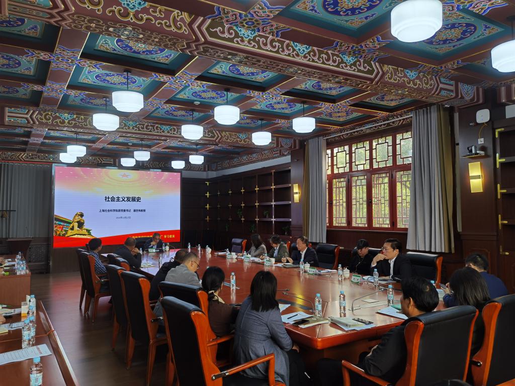 本网讯 10月27日下午,学校党委举行中心组理论学习会,“四史”学习教育,特邀上海社会科学院原党委书记潘世伟教授作“社会主义发展史”辅导报告。党委副书记潘勤主持会议。