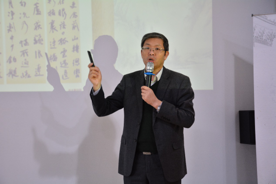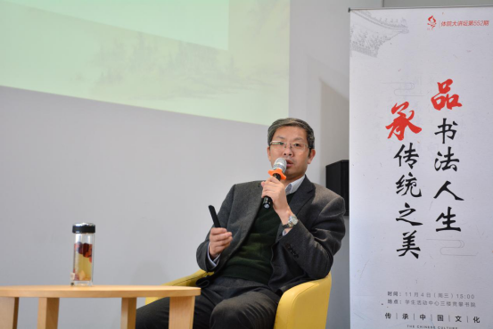 除了著名的古代优秀书法作品,当代优秀书法作品也值得我们细细品味,张老师从书法风格、写作状态等方面品读当代书法家的优秀作品的迥异,分析书法作品的创作,让在场的同学体会到:书法作为一门国学,其变与不变、传承与发展,有着值得深刻品味的奥秘。