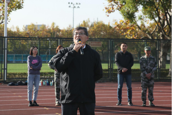 院长陈佩杰代表学校向全体参训师生表达了关切与慰问,他讲到,第一,今年军训最大的特点就是让在学校经历过风风雨雨的“老同学”们(教官)来指导2020级新同学,这能起到很好的示范感染作用,一代代绿瓦体育人接续成长;第二,希望通过必修课“国防教育”,能够让同学们得到蜕变,让同学们更加自信,更加坚强,更加努力地学习、成长,为上体的发展、国家的进步贡献力量。最后,他表达了对上海体育学院建校68周年的祝福与憧憬。强国强军的责任之棒已经传递到我们这一代青年人的手中,培养爱国主义精神,铸造良好道德品行,是青年学子的使命。