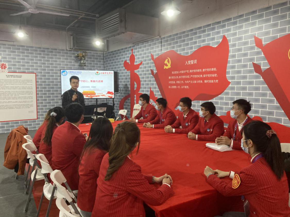 在这样特殊的时期,很开心能够成为第三届国国际进口博览会的志愿者,很荣幸能够作为预备党员的身份参加了本次不太一样的支部活动。在这次会议中,何俊毅老师向我们回顾了一些党的理论知识,学习了习近平总书记的重要讲话,并分享了一些历史伟人们成为党员的历程。我更加的意识到党员群体是一群优秀人的聚集地,这更加坚定了我成为一名优秀的中国共产党员的信念。与此同时,我也意识到我需要更加深入的学习党的理论知识,并付诸于实践。努力成为一名更加优秀的大学生,在进博会期间更加认真地履行自己的义务,做一名称职的小叶子。
