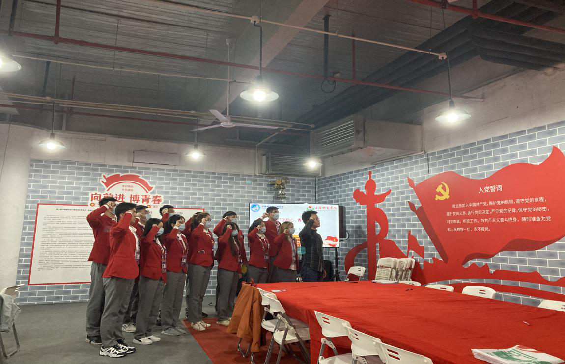 会议的最后何俊毅老师带领着大家进行了宣誓,寂静的大厅被小叶子们铿锵有力的声音所撼动,在这节庄严的党课中,同学们明确了自己正确的入党动机,明白了如何在实践中不断提高自身政治素养,坚定自己的入党初心!更激发了同学们加入党组织的激情!“小叶子”们怀着更加饱满的热情投入“进博会”志愿服务中。