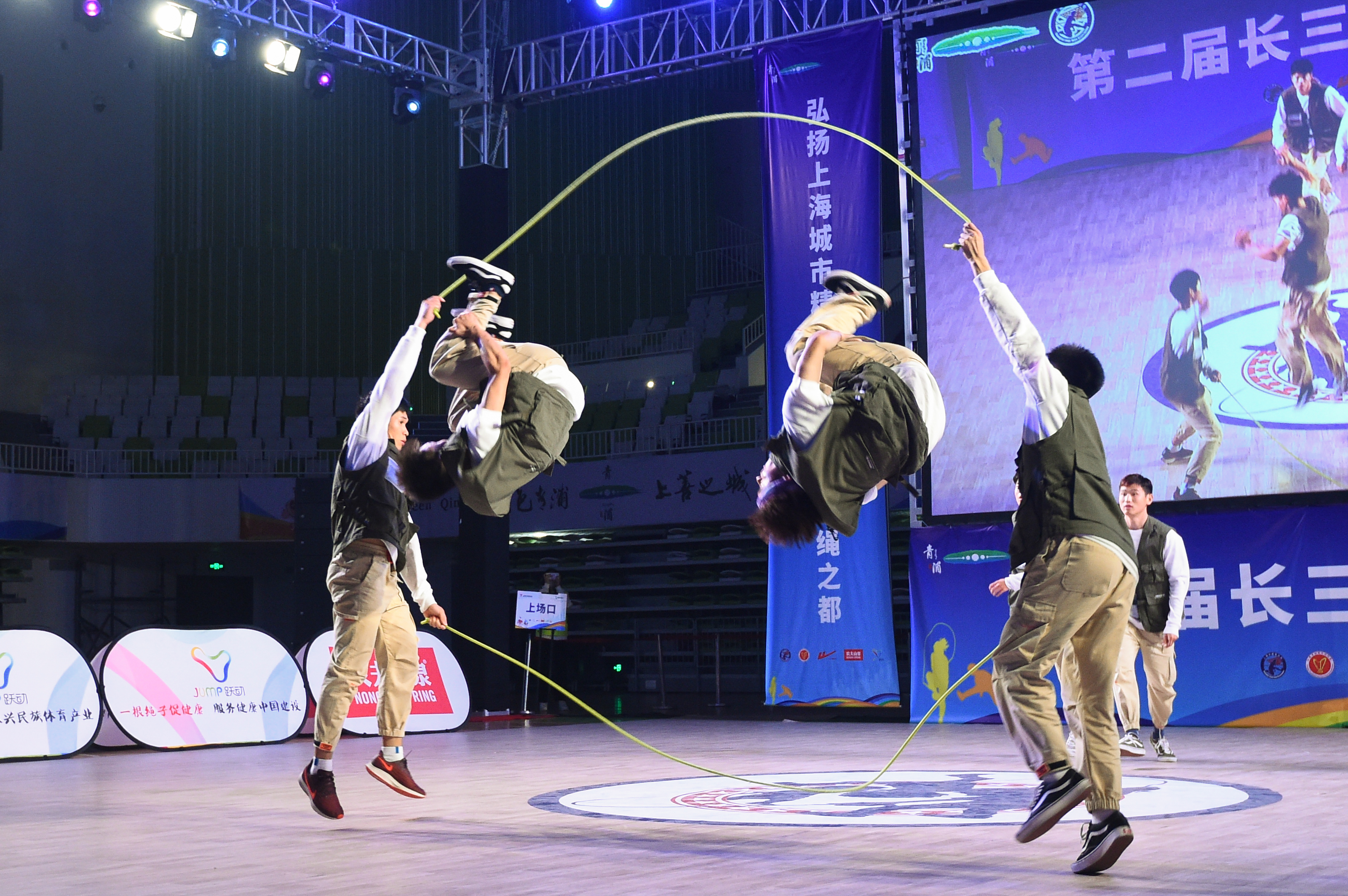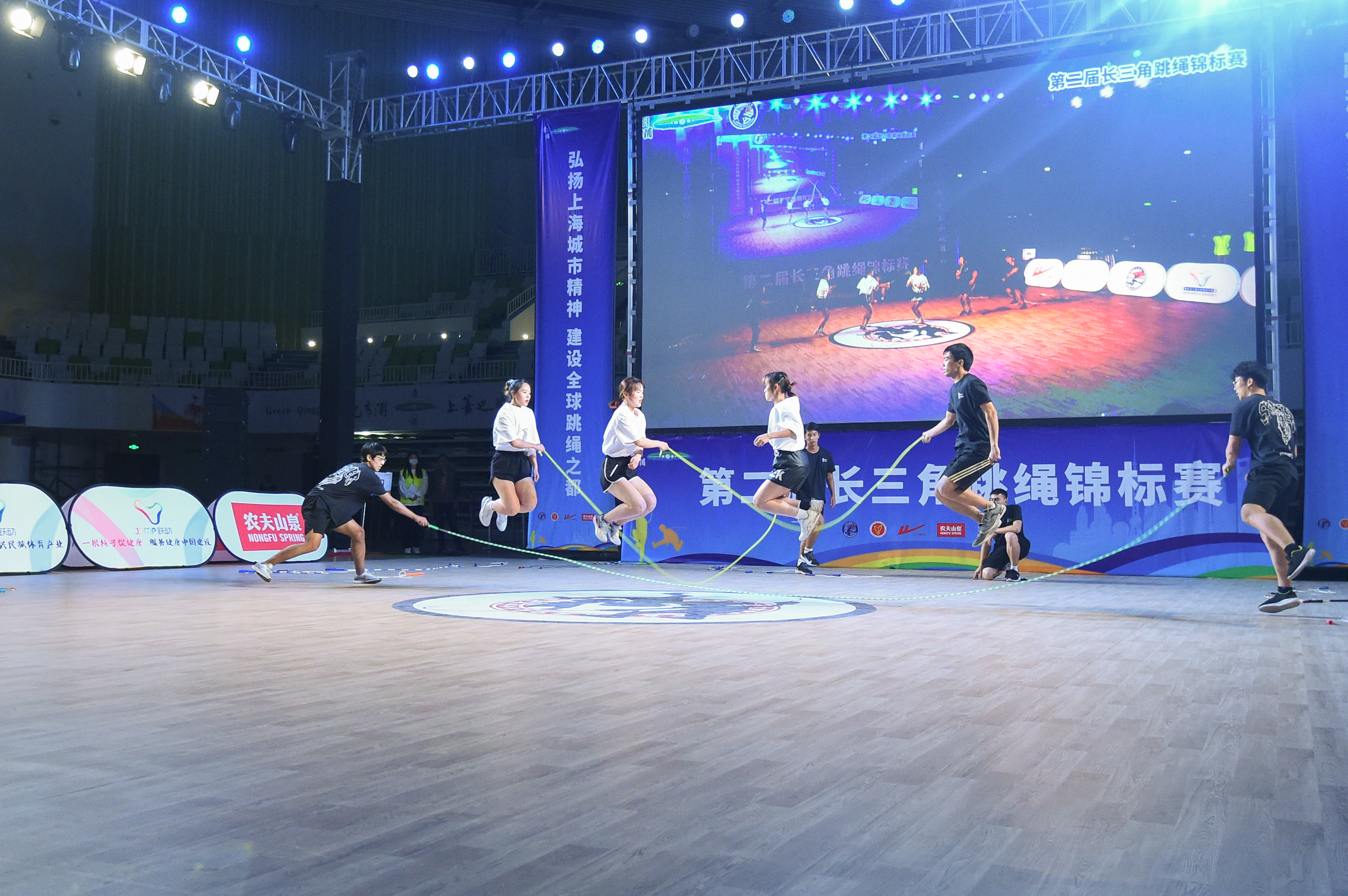 本网讯 11月22日,由长三角跳绳联盟和上海市跳绳协会主办的第二届长三角跳绳锦标赛在上善之城•绿色青浦成功举办,共有来自全国10个省市的29家单位39支队伍共计338名运动员参赛,上海体育学院花样跳绳队8名成员在领队霍圣录和教练韩耀刚的带领下取得优异成绩,其中速度赛(30秒单摇跳、30秒交互绳速度跳)获得一金两银两铜,花样赛(套路表演赛、大型集体自编赛)获得两个一等奖和一个二等奖。