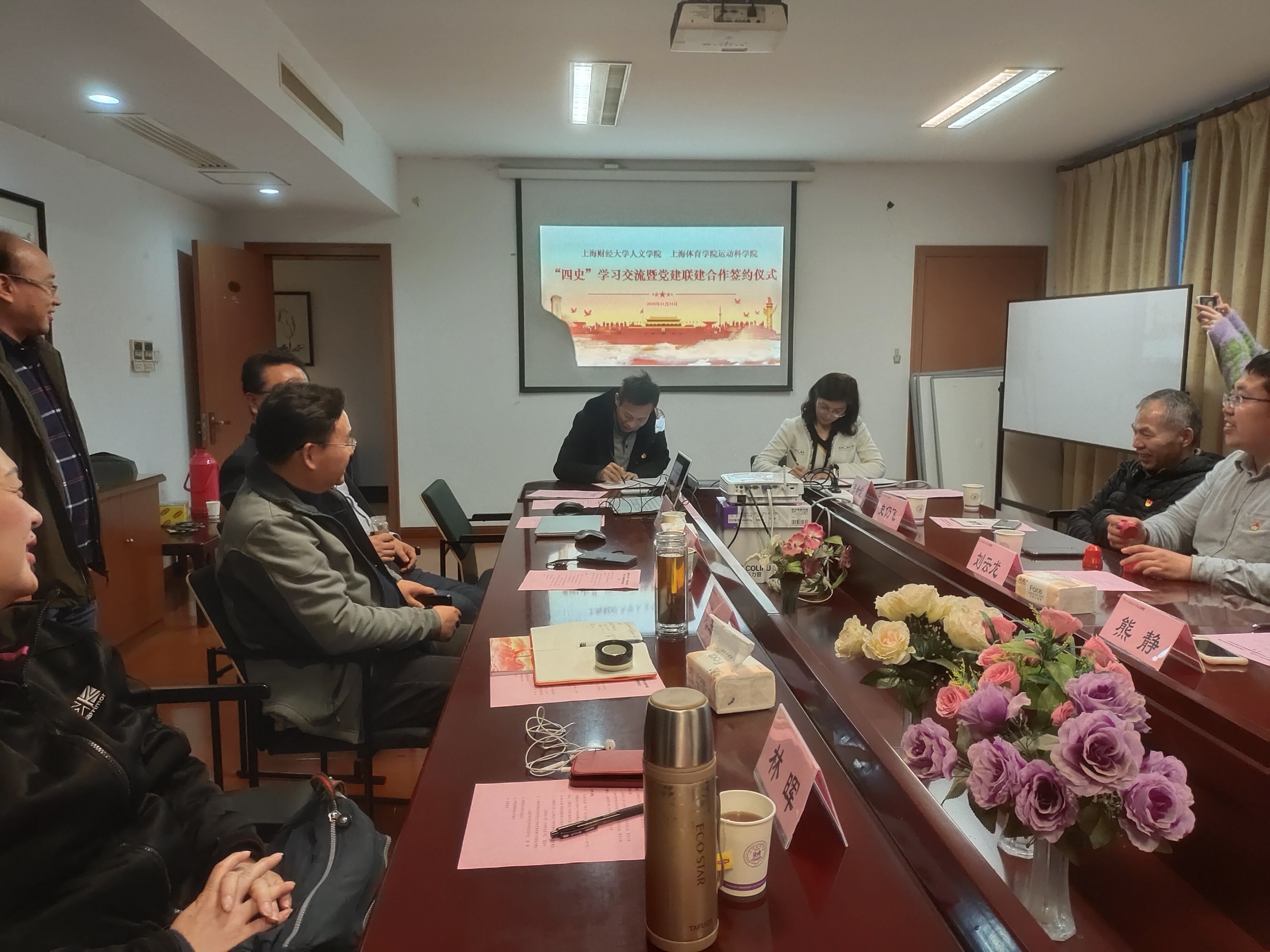 本网讯 11月24日,运动科学学院党委与上海财经大学人文学院党委就打造区域党建共同体实现党建战略合作达成共识,并在上海财经大学人文学院同新楼会议室签署战略合作框架协议。运动科学学院党委书记熊静、副书记陈莉莉、教师党员代表史仍飞、组织员刘云龙及各学生支部书记与上海财经大学人文学院党委书记范宝舟、党委副书记人文学院院长陈忠、副书记刘凯、副院长刘长喜、林晖,组织员魏南海、学生支部书记一同参加签字仪式,仪式后两校教工与学生支部完成结对。