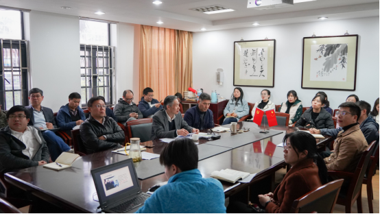 本网讯 12月2日下午,经济管理学院邀请学校党委副书记、副院长陈晓峰,以“书记上党课”的形式开展学习贯彻党的十九届五中全会精神主题党日活动。经管学院党委书记游林生,党委副书记、院长李海,教工党支部全体教师和学生党员代表参加并认真学习本次党课。