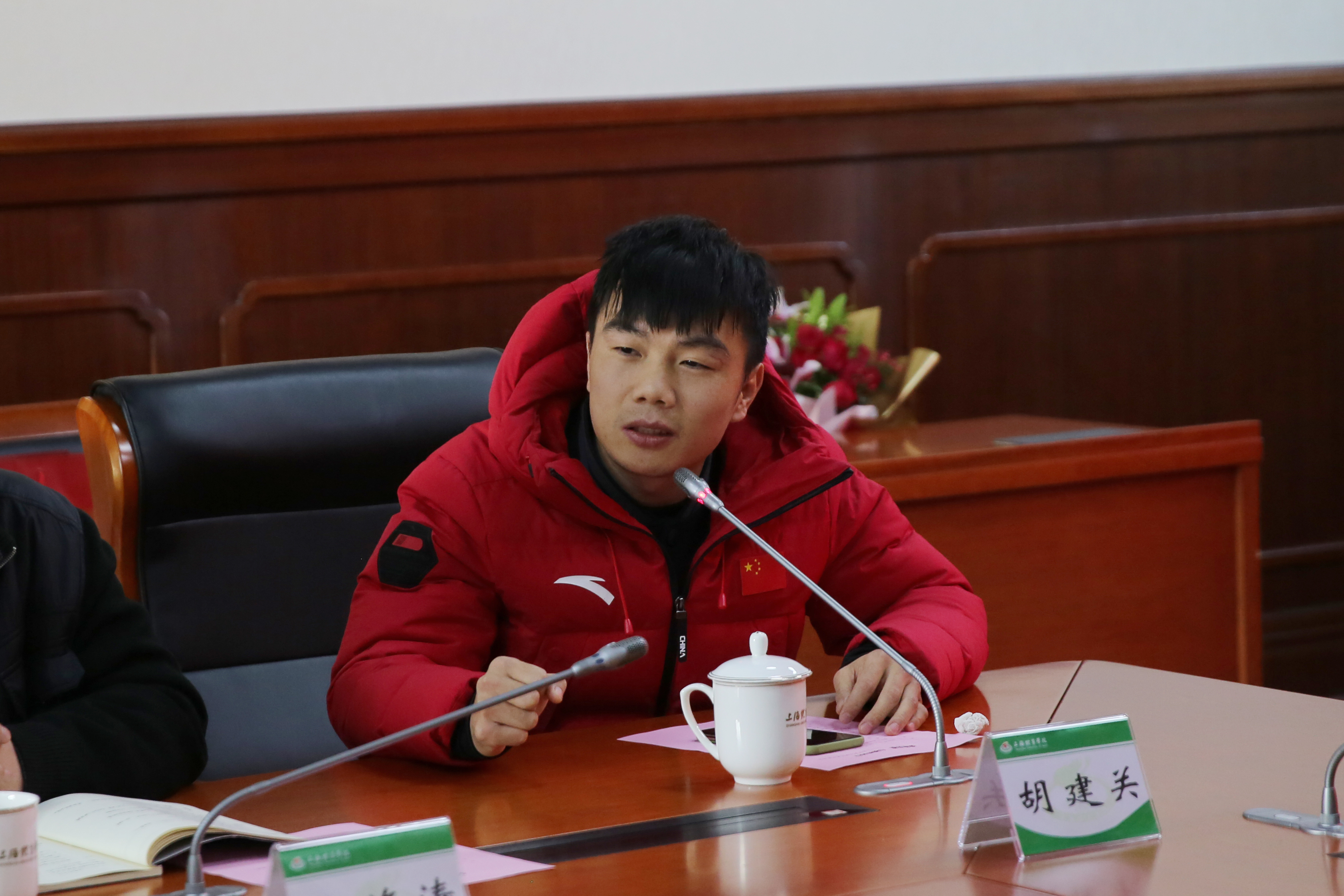 潘峰老师对学校表达了由衷的感谢,他表示,在接下来的工作中,将深刻践行习总书记“勤于创造、勇于奋斗”的行动号召,重新出发,以更高的标准要求自己,不断提高和完善自己的综合素质及训练水平,不辜负组织和同志们的鼓励与期待。