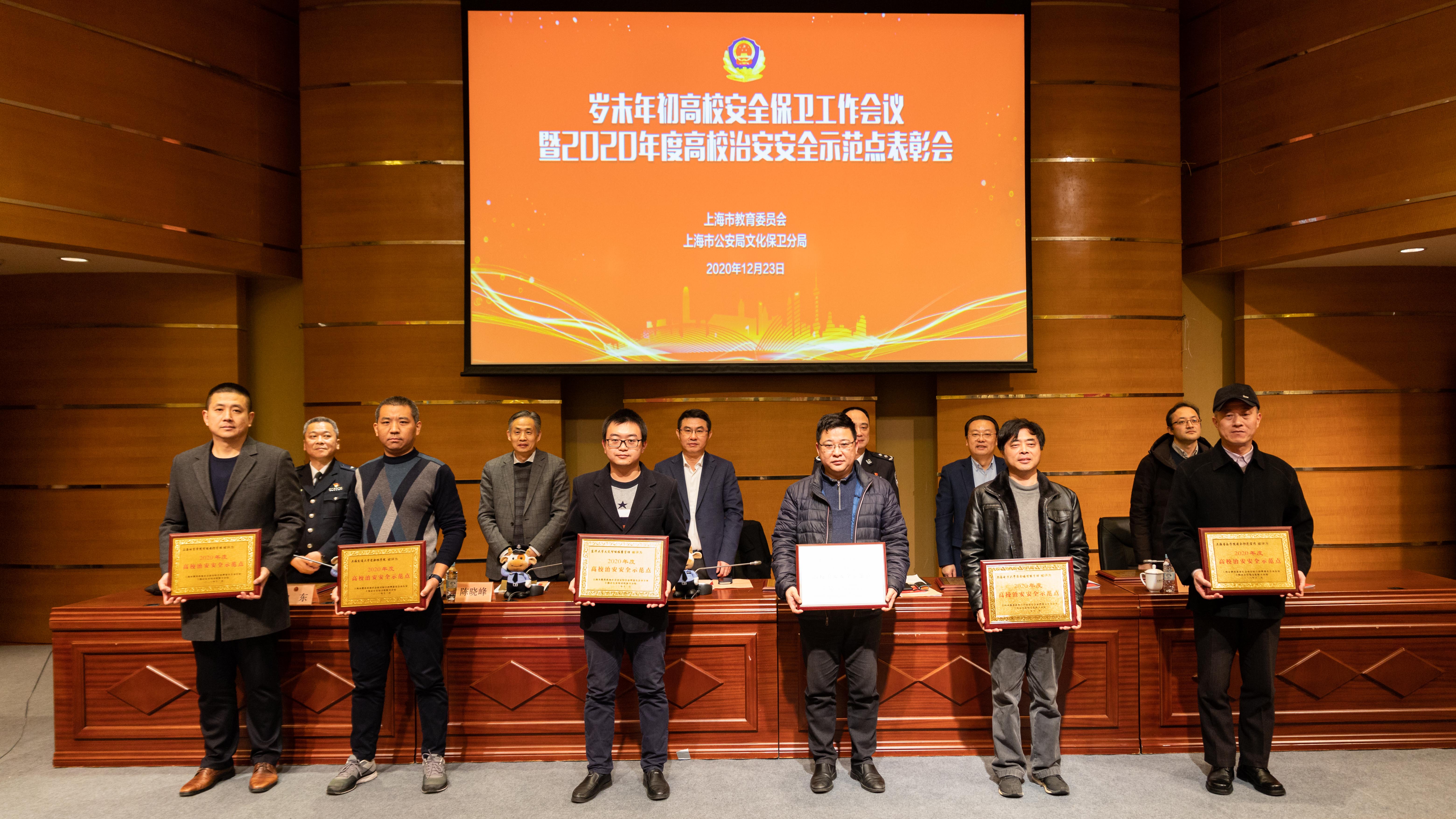 会上,市教卫党委、教委和文保分局的领导向来自本市24个获得“2020年度高校治安安全示范点”的单位颁奖,SUNBET的“智能安防管理工作法”获此殊荣,这是SUNBET保卫处继获得“上海市安全文明校园”、“平安校园”后,又一荣誉称号。