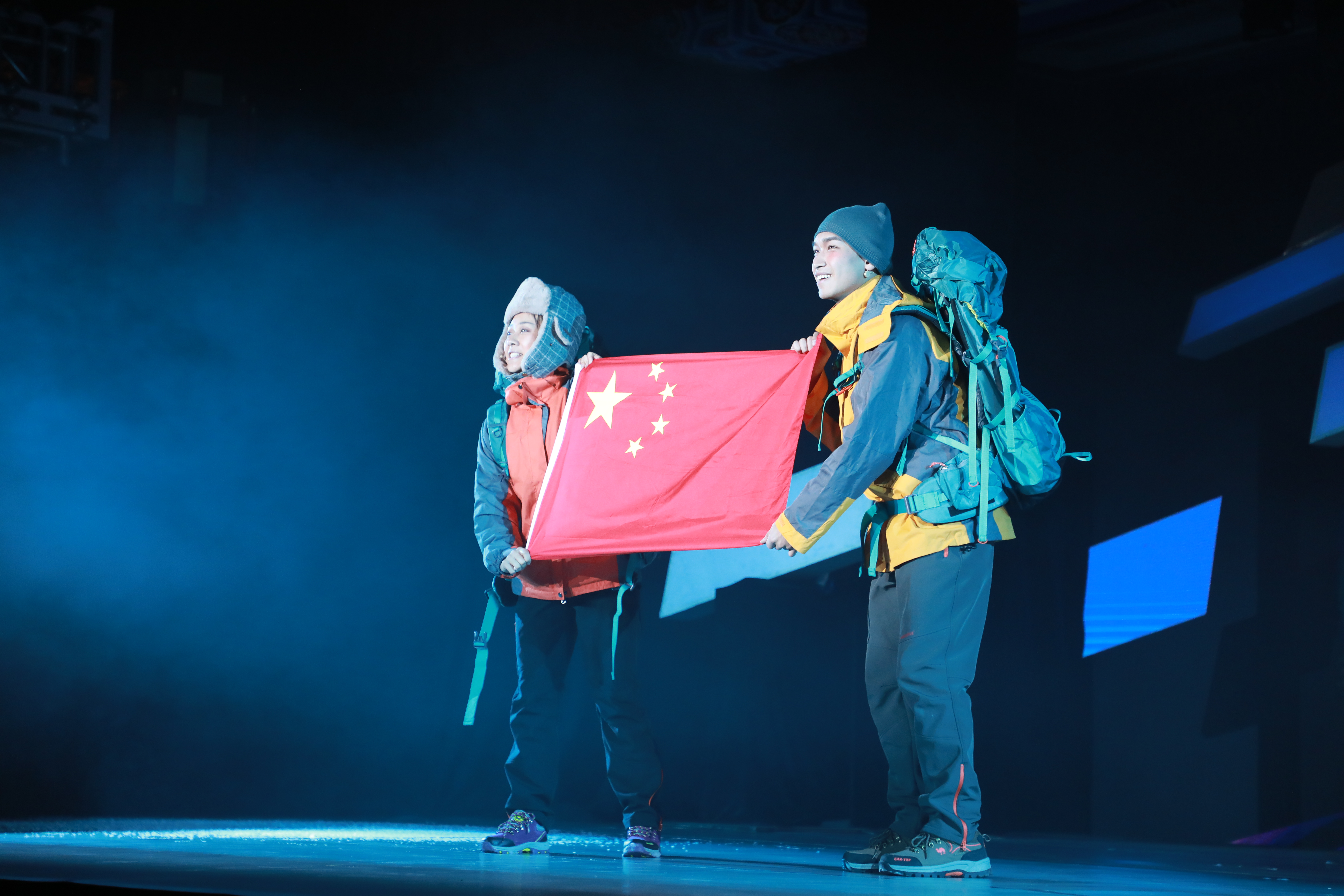 登顶珠峰的吉吉与仁那:队长说他们是队里著名的“一对比翼鸟、两个冒险家”。他们热爱着彼此也热爱着登山,他们互相搀扶、历尽艰险见证着彼此登顶珠峰。然而意外终让两人阴阳相隔,仁那永远的留在迦舒布鲁姆I峰。相见会被意外阻隔但是爱不会,是他们彼此对对方的爱也是他们对登山运动共同的爱。最终吉吉带着对仁那、对登山的爱征服了迦舒布鲁姆I峰,也完成了她人生最重要的一次登山任务——2008奥运圣火在珠穆朗玛峰的传递。这一幕写意的展现也让我们见识了体育的柔情!“永怀攀登精神,我们的征途是浩瀚星辰。因为心怀梦想,所以坚定前行。”登峰而小天下,攀登的意义正在于诠释体育竞技和科技强国的内核,将体育的信仰深深刻上中国烙印。