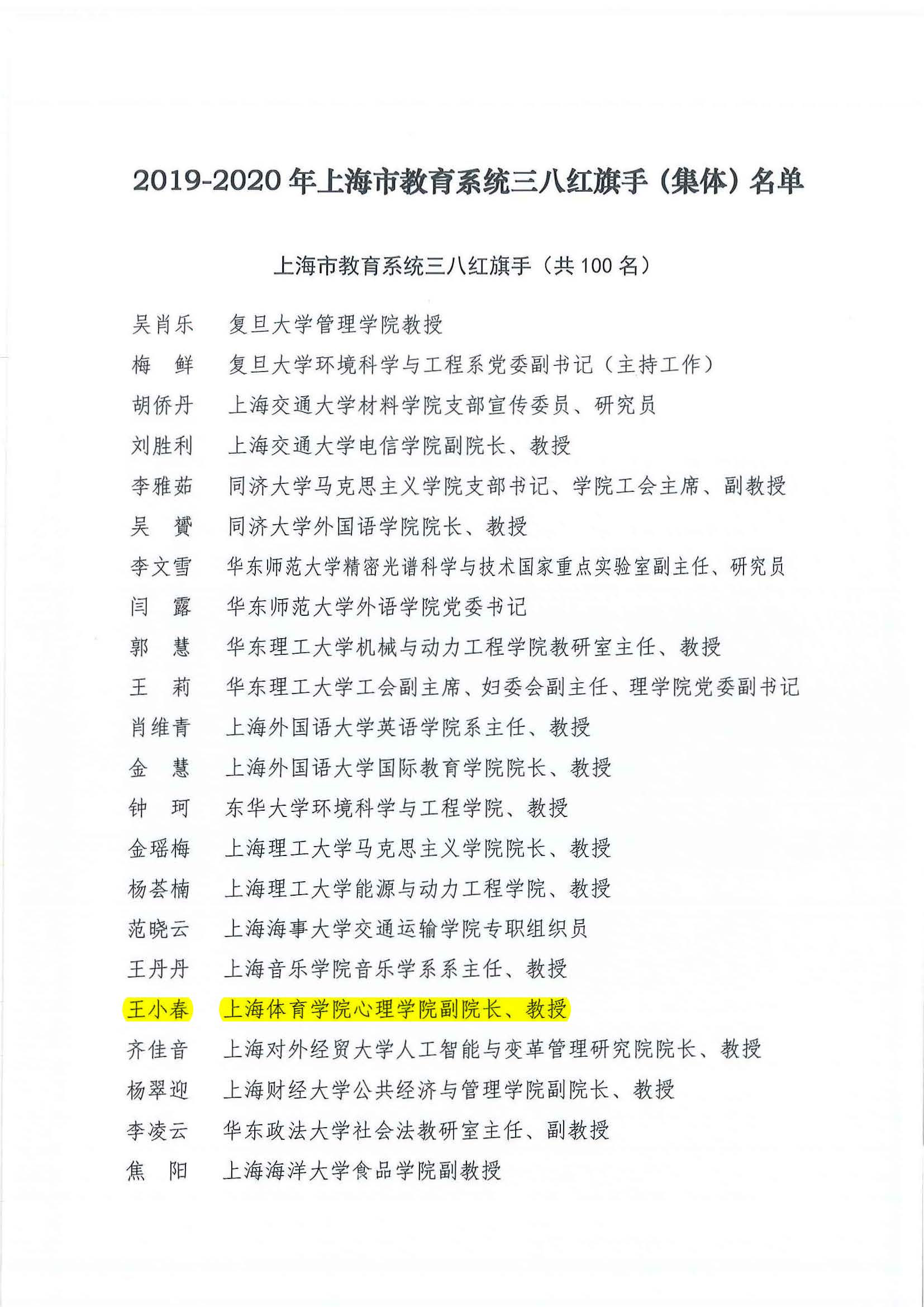 同时,根据上海市教育系统妇女工作委员会《关于评选2019-2020年度上海市及教育系统三八红旗手(集体)的通知》精神,围绕“争做巾帼最美奋斗者”主题,学校妇委会、工会女工委按规定在全校组织开展了“2019-2020年度上海体育学院三八红旗手(集体)”推荐评选工作。