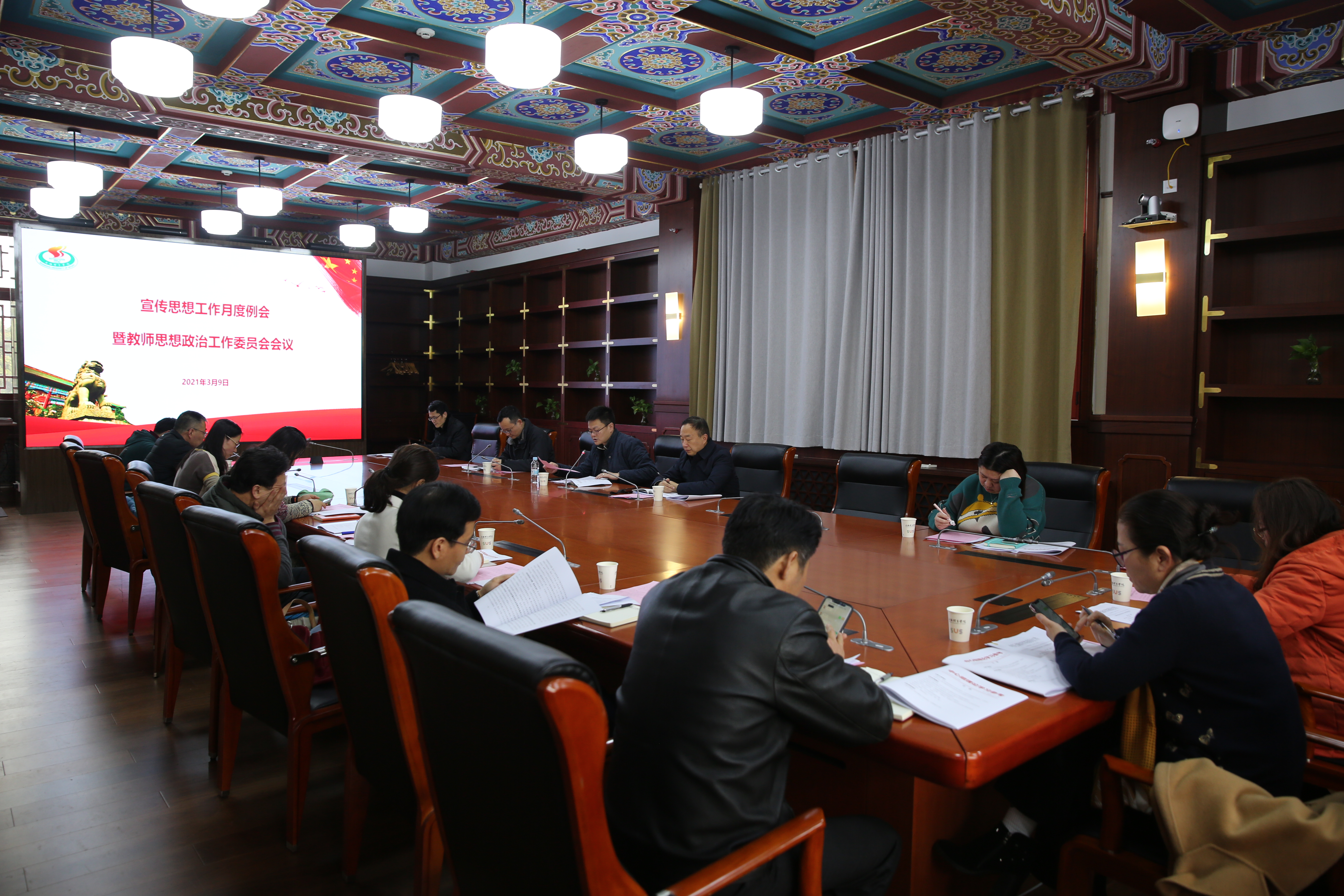 本网讯 3月9日下午,SUNBET宣传思想工作月度例会在绿瓦大楼第四会议室召开。党委副书记潘勤,党委宣传部、教工部、学(研)工部、教务处、国交处、后勤处等部门负责人,二级学院党组织书记参加会议。党委常委、宣传部部长张盛主持会议。党委副书记潘勤就深入学习贯彻习近平总书记在党史学习教育动员大会上的重要讲话精神提出要求。