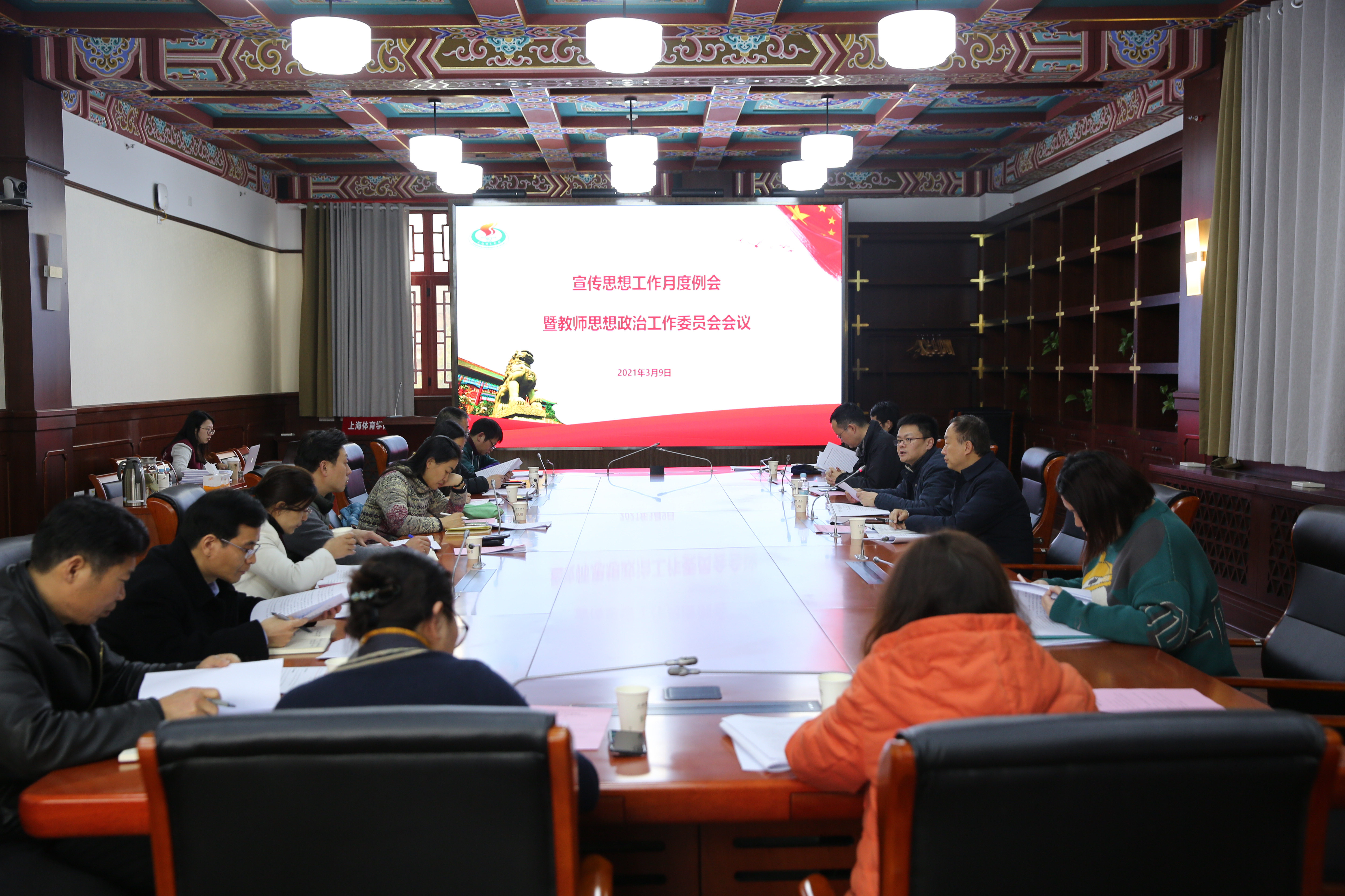 党委常委、宣传部部长张盛传达了上级有关会议精神,对《上海体育学院2021年宣传思想工作要点(征求意见稿)》《上海体育学院2021年教师思想政治工作要点(征求意见稿)》作了介绍。学校相关职能部门就做好新学期宣传思想工作与二级学院党组织负责同志进行了互动交流。