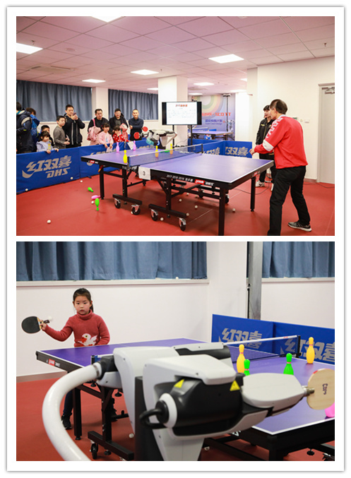 本网讯 近日,中国乒乓球学院师生团队在“派乐乒乓SCD-TT”人工智能训练馆举办了乒乓嘉年华活动,通过乒乓球机器人、动作延时反馈系统等高科技设备与手段以球会友,吸引了众多乒乓球爱好者的参加,现场氛围十分热烈。