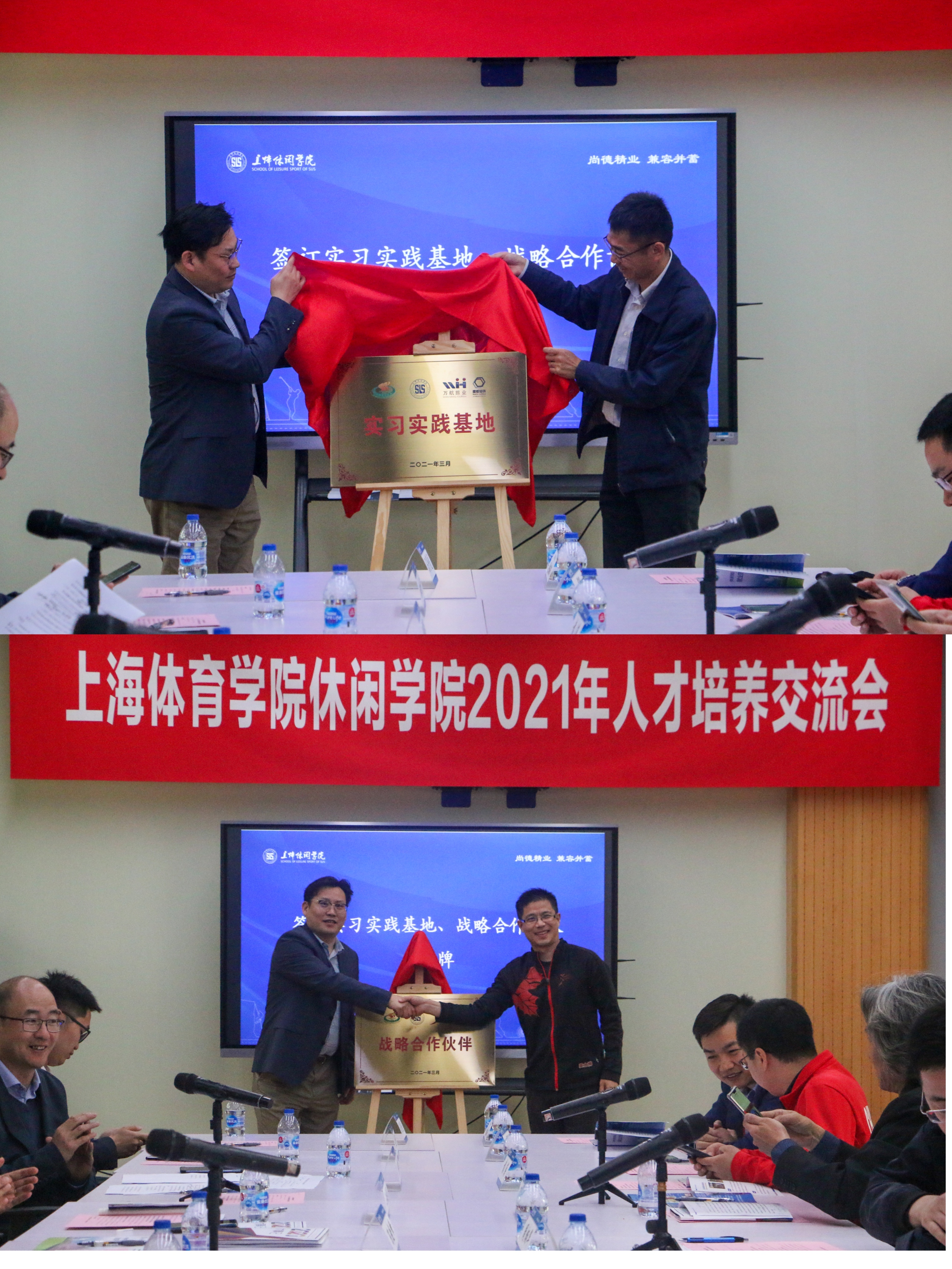 休闲学院院长王红英分别与上海市体育总会秘书处、万航旅业(上海)有限公司、上海市青少年体育协会、中讯邮电咨询设计院有限公司智慧体育研究院、上海英士博体育管理有限公司、北京中迹体育管理有限公司、上海翔立方文化体育集团有限公司签订实习实践基地、战略合作协议。
