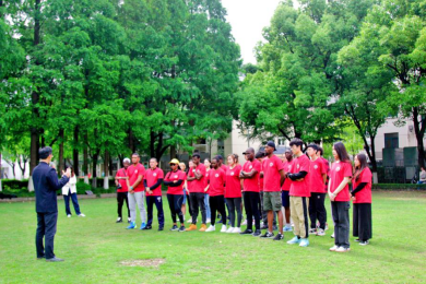 出发前,全体参与活动的中外同学一起热身破冰,打破初次见面的尴尬,并自由分组,方便后续活动的开展。