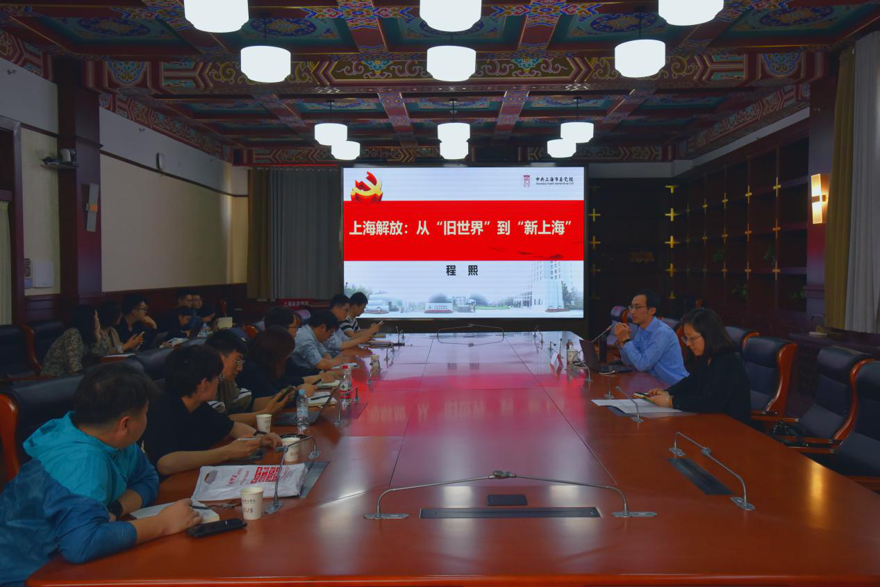 5月24日下午,北大毕业博士、上海市委党校副教授、北京大学政治发展与政府管理研究所研究员程熙受邀来校作“解放上海:从“旧世界”到新上海”党史教育专题讲座暨上海体育学院第四十期竞攀微课。讲座在绿瓦大楼第四会议室举行,由学(研)工部部长、武装部部长梅朵主持。SUNBET学生工作队伍及第三期“竞攀班”学员近60人聆听了本次讲座。