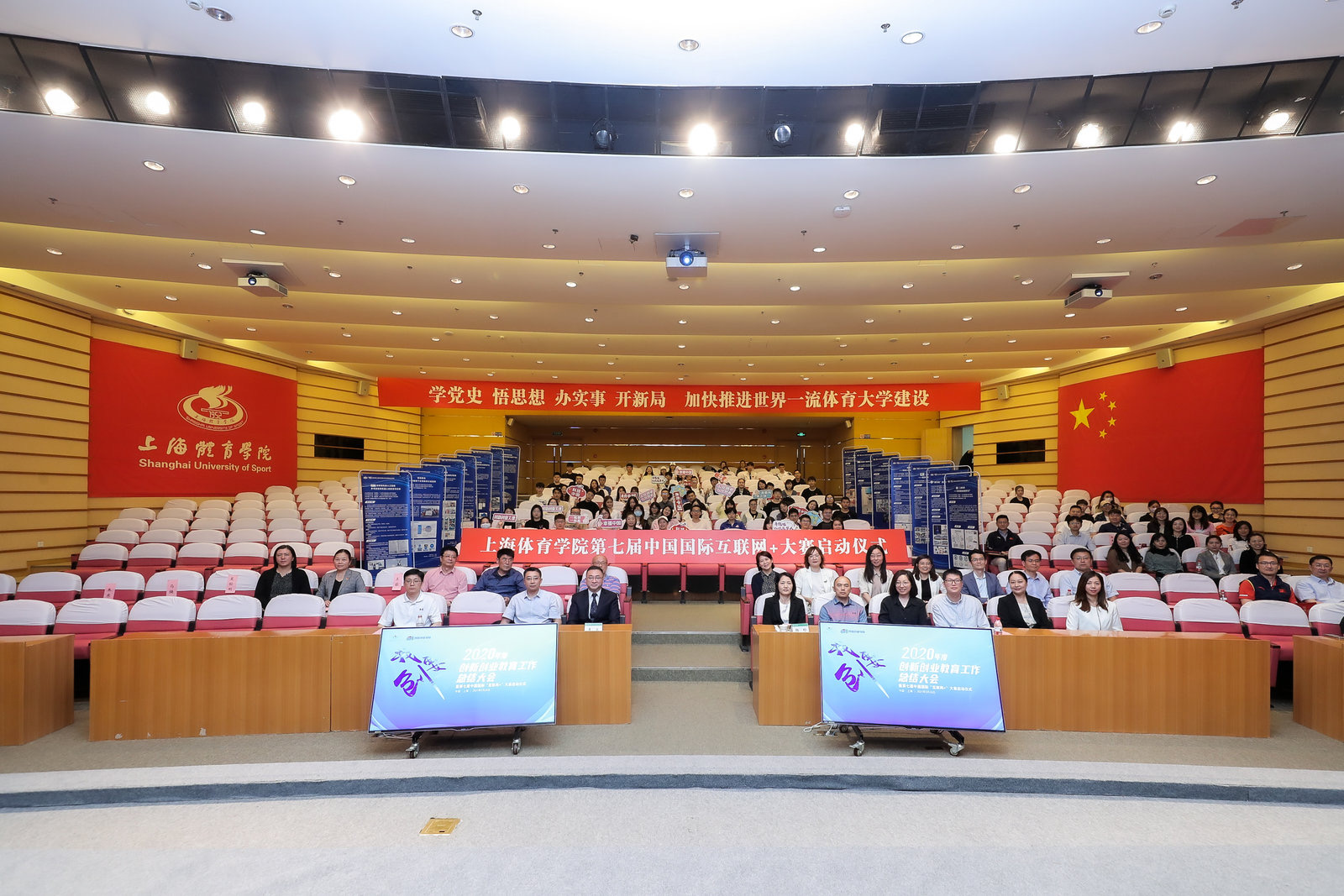 本网讯 5月26日,上海体育学院2020年度创新创业教育工作总结大会暨第七届中国国际互联网+大赛启动仪式在图文信息楼报告厅举行。上海体育学院党委书记李崟、党委副书记杨玲、副院长唐炎出席活动。会议由上海体育学院创新创业学院执行院长吴雪萍主持,学校各相关职能部门,中乒院、体职院、各二级学院党政负责人及各项目师生代表出席活动。