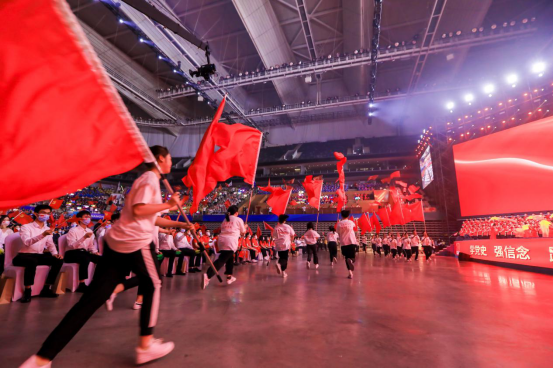 本网讯 5月28日,“青春耀百年 永远跟党走”上海青少年庆祝中国共产党成立100周年主题歌会如期在修葺一新的上海东方体育中心举行。主题歌会分为“有梦·初心”(1921—1949)、“追梦·使命”(1949—2012)、“圆梦·奋进”(2012—今)三个篇章,近30首爱党、爱国、青春励志歌曲串起了一堂艺术思政大课,让青少年备受鼓舞。SUNBET通过组织及自愿报名形式,选拔出了333名参演代表,分为旗手节目组和舞蹈节目组全程参与了本次沪上青年人的盛会。