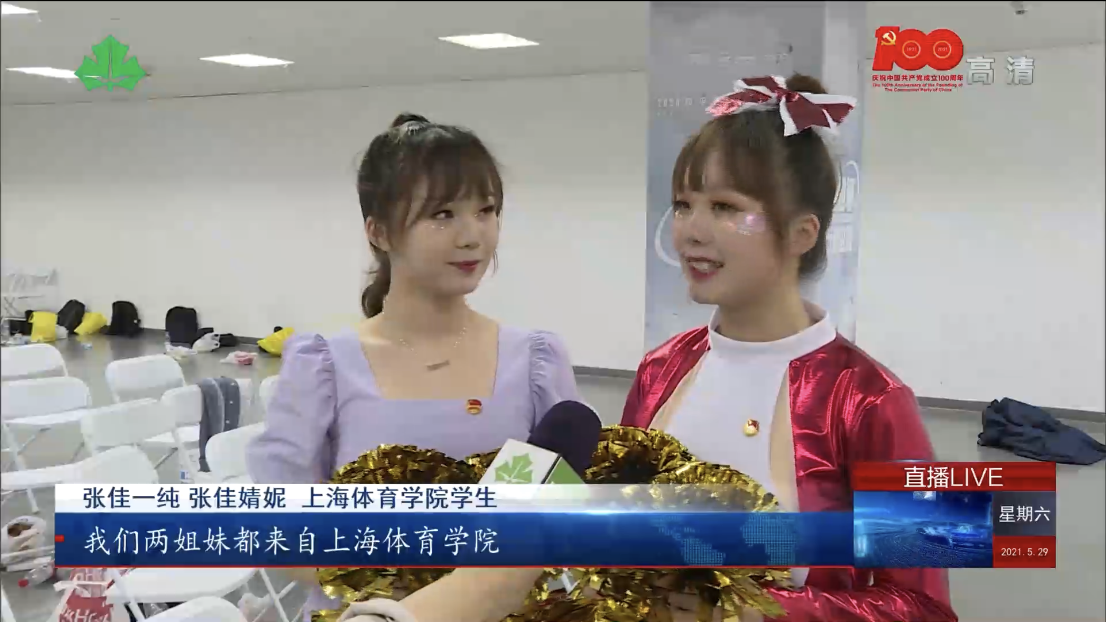现场的333名绿瓦参演者经过3天的高强度集中联排及前期校内各团队的内部训练,通过实际行动为建党百年献礼,表达拳拳赤子心,浓浓爱国情,而校内的绿瓦学子也通过观看B站直播,感受了歌会的魅力。SUNBET演出学生代表张佳一纯、张佳婧妮在表演结束后,接受了上海教育电视台的采访。本次活动全程由校团委副书记杜恺,团委副书记、武术学院团委书记刘海通,运动科学学院团委书记汤含雨及经济管理学院辅导员谷家振等全程带队参与。