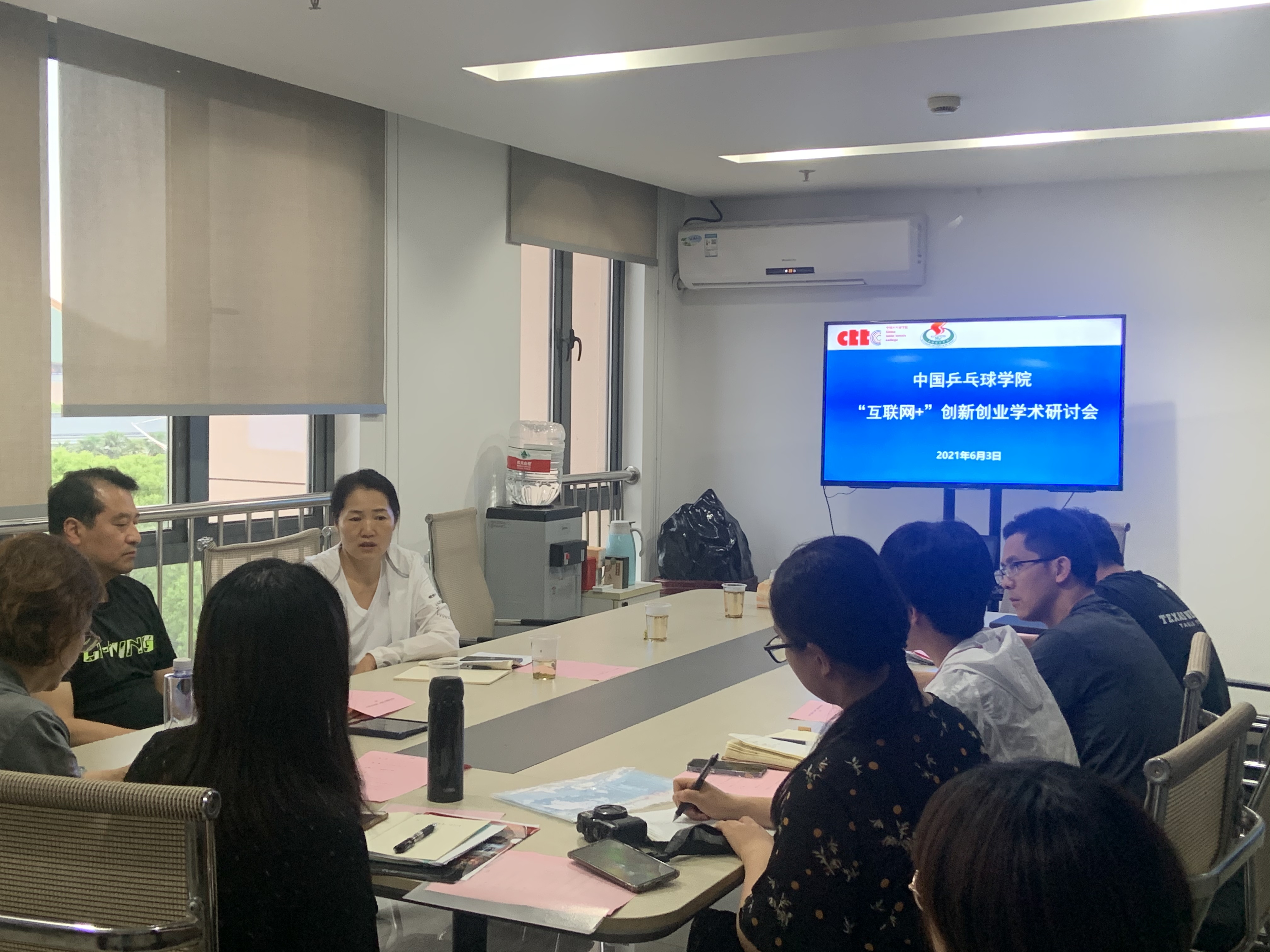 本网讯 6月3日,中国乒乓球学院在乒乓球训练馆会议室举行“互联网+”创新创业学术研讨会。上海体育学院党委副书记、中乒院党委书记杨玲,上海体育学院创新创业学院副院长、教务处副处长陈伟,中乒院副院长任杰,以及全体教职工参加了活动。会议由中乒院副院长陈彬主持。