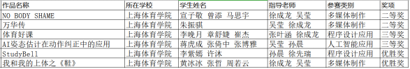 经济管理学院吴莹、张叶涵、徐成龙、孙晨、徐先瑞五位教师指导学生参加了多媒体制作、程序设计应用、人工智能应用、程序设计应用4类比赛的角逐,其中,朱振骐原创音乐作品《万华传》,马思宇、宣子敬、曾添团队原创视频作品《NO BODY SHAME》获二等奖;李晚月、章舒婕、崔杰团队的原创微信小程序作品《体育好课》,蒋虎成、张倚中、张博雅团队的原创人工智能应用作品《AI姿态估计在动作纠正中的应用》获三等奖;李紫嫣、许沐团队的原创程序设计作品《StudyBell》,黄冰冰、张哲、周若云团队的原创视频作品《我和我的上体之“鞋”》获优胜奖。