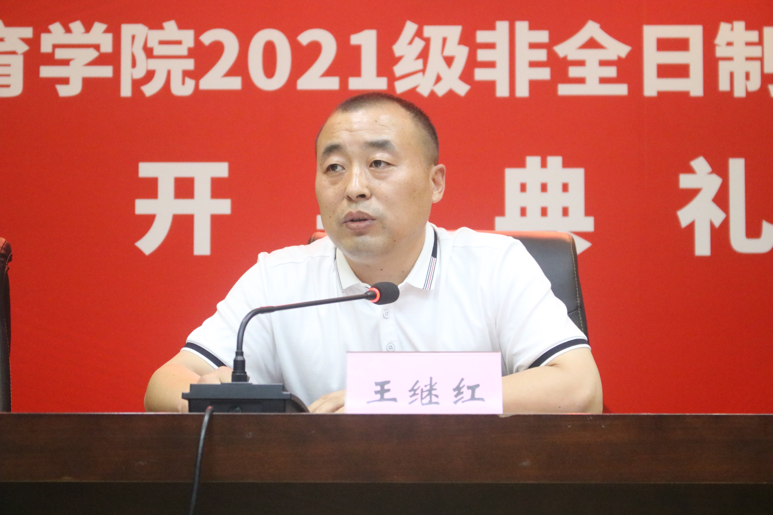 王继红总结了上体在发展各个阶段抢抓机遇、攻坚克难的实例。同时,他对同学们提出了几点期望:第一,要瞄准目标,实现三个转变,即“工作者”到“学生”、从“工作岗位”到“学习岗位”、从“家庭生活”到“集体生活”的三个转变;第二,要明确任务,端正学风作风,坐下来、静下心、沉进去地学好各类课程,真正做到增长知识、学有所获;第三,要提升能力,做到学以致用,把学到的知识、经验转化为工作的智慧、能力,将更多学习成果和实践经验带回岗位上,转化为干事创业的实际行动和工作举措。他希望同学们在校学习期间永葆学习热情和思想活力,教学相长,学学相长,不断完善自我,提升自我,学有所成。