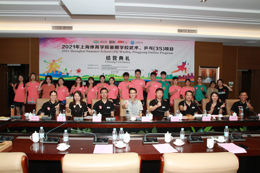 本网讯 7月6号下午,由上海市教委主办、上海体育学院国际教育学院承办的“2021年上海暑期学校(Shanghai Summer School,3S)武术、乒乓项目(线上)结营典礼暨总结交流会于体院体育交流中心第一会议室举办。来自美国、澳大利亚、荷兰、意大利、葡萄牙、瑞士、保加利亚、越南、印尼等20多个国家的40余名学员通过线上平台参加了结业典礼。国教学院党总支书记刘东锋,国教学院院长吴贻刚、副院长朱东,中乒院副院长陈彬出席结营典礼。相关教师和志愿者一同参加了结业典礼,典礼由朱东主持。