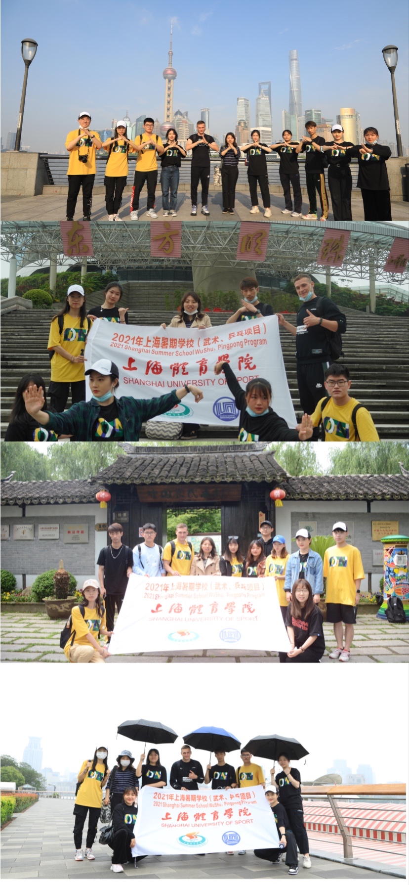 课堂之外,该项目积极引入当季赛事,前往2021上海市青少年武术(套路)锦标赛拍摄,并对接中国大学生射艺锦标赛活动,进行视频录制和编辑。文化体验录制则采用真人秀进行街头观光走访,打卡地标,详细介绍上海的人文历史,并在外滩和东方明珠等地标进行体育趣味表演。本次项目还增设了别开生面的文艺交流活动,SUNBET本科生带来了《霍元甲》舞蹈、功夫熊猫等英文歌曲,古巴学员则在荧幕另一端表演了民族舞蹈。