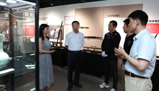 开幕当天,上海体育学院党委副书记潘勤,上海体育学院党委宣传部副部长(主持工作)夏铭娜、副部长黄勇,上海体育学院武术学院党委书记刘明生,武术学院院长、博物馆馆长郭玉成及部分师生参观了展览。潘书记肯定了本次展览的重要价值,指出剑文化是我国优秀传统文化的重要组成部分,也是武术学科应该重点研究的内容之一,要通过本次展览对剑文化内涵做出更深层次的挖掘,并将此类优秀博物馆教育资源与课程思政有机融合,使学生们通过观展,不但可以了解宝剑铸造工艺,更能领会宝剑之于中国人的精神意义。如此,才可实现对以国家级非物质文化遗产为代表的中华优秀传统文化的更深传承、更广传播、更大发展。