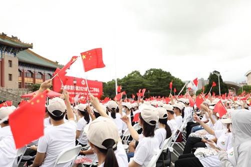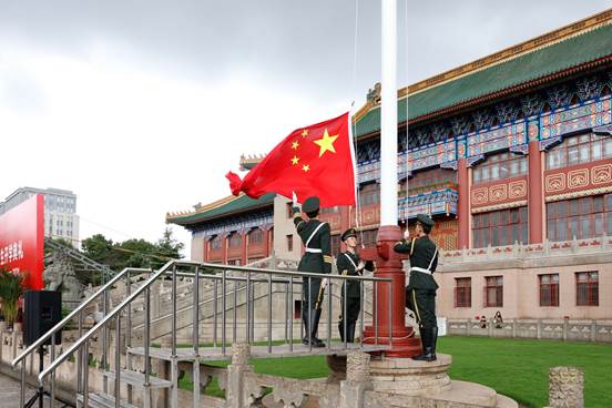 典礼在庄严的国歌声中拉开序幕。巍巍绿瓦大楼,飘飘壮丽国旗。