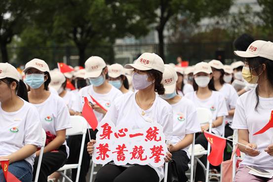 最后,师生同唱《没有共产党就没有新中国》,从歌声中汲取力量,坚定永远跟党走的信心。上海体育学院2021级新生开学典礼在壮丽的歌声中结束。