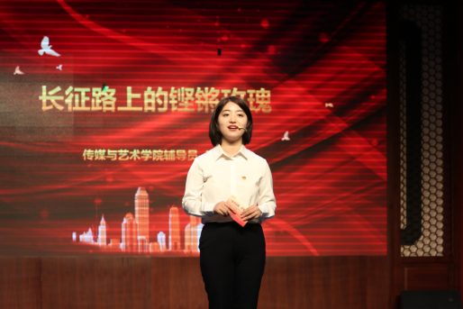 绿瓦青年讲师团、辅导员王乐作《长征路上的铿锵玫瑰》微课宣讲,长征路上中国工农红军第四方面军的妇女独立营杜文凯在战场上翻山越岭、不曾停歇,“播种”的革命火种燃烧成炽热的火焰,赋予了长征直指人心的力量。而女性力量穿越时空,在新时代新长征路上,在各行各业凝聚起更磅礴的力量,在体育领域也撑起了“半边天”,无论是敢打敢拼的中国女排,还是上海体育学院首任教务长张汇兰先生,她们传递着伟大的中华体育精神和体育教学精神。她指出,作为绿瓦人,我们要赓续先贤精神血脉,不忘时代重任,脚踏实地,不辱使命,将自己的热血挥洒于脚下的这片土地,无愧于热爱,无愧于时代。我们要“担复兴大任,做时代新人”,为实现中华民族伟大复兴和体育强国梦贡献青春力量!