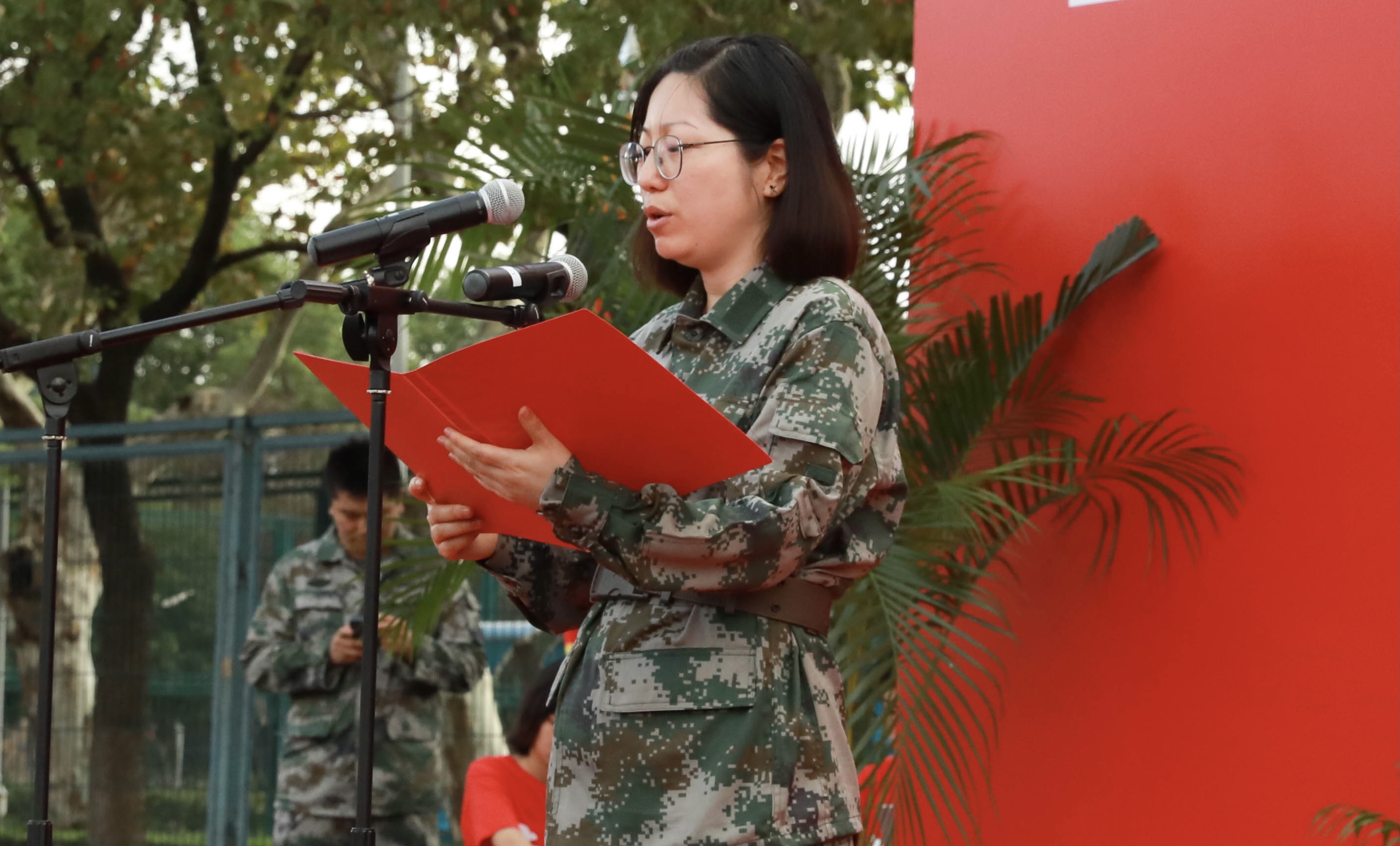 来自传媒与艺术学院的刘开元同学作为退伍学生代表发言。他与同学们分享了自己的军旅生活故事,表示作为在校退伍学生,一定会传承部队的光荣传统,努力成长为全面发展的高素质人才;同时,作为本次军训的教官代表,他希望同学们以汗水为墨,以迷彩为笔,在大学生活的扉页上,挥洒出阳光下最壮丽的宣言。