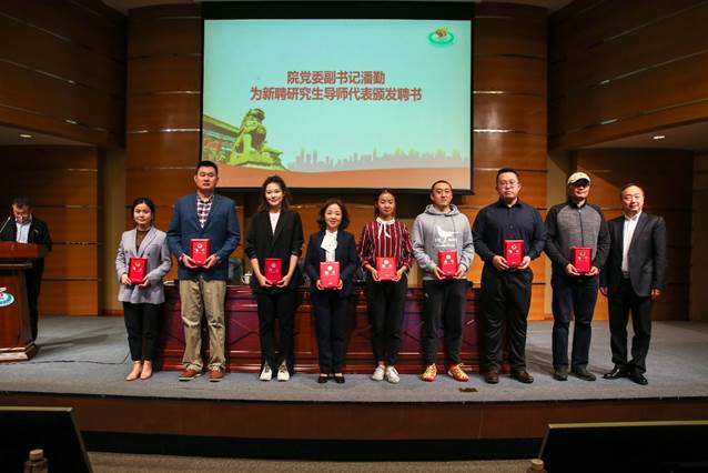 会上,校党委副书记潘勤为新聘研究生导师代表颁发聘书。