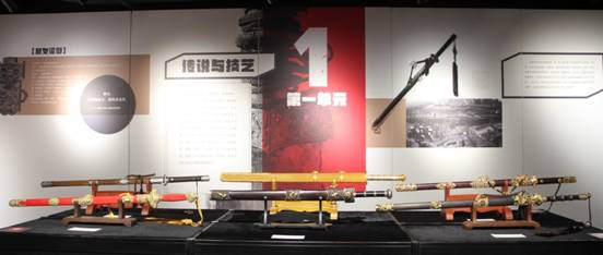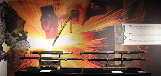 “天下龙泉——宝剑专题展”由线下展、线上展和校园巡展三部分构成。线下展位于中国武术博物馆负一层临展厅,共展出了44件龙泉宝剑锻制技艺非遗传承人打造的精品龙泉宝剑;线上展以中国武术博物馆微信公众号——“武术博物馆”为平台,从工艺、源流和文化等方面精讲了每一把宝剑,并补充了更多宝剑的细节,为观众提供了更全面的展示。此次校园巡展精选了30把宝剑,通过图文并茂的形式将中国武术宝剑历史与文化以精品展的方式进行展现,旨在向青少年普及武术剑的历史与文化,提升青少年对武术文化的理解和认知,弘扬优秀传统文化,增强文化自信。