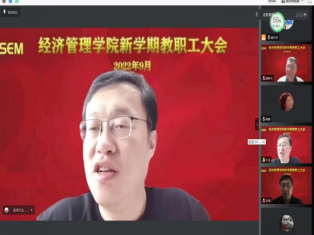 本网讯 2022年9月2日,经济管理学院线上召开新学期全体教职工大会,会议对新学期工作、疫情防控工作作出部署。上海体育学院副院长王陈出席会议,经济管理学院党政领导班子及全体教职工参加会议。会议由经济管理学院党委书记游林生主持。