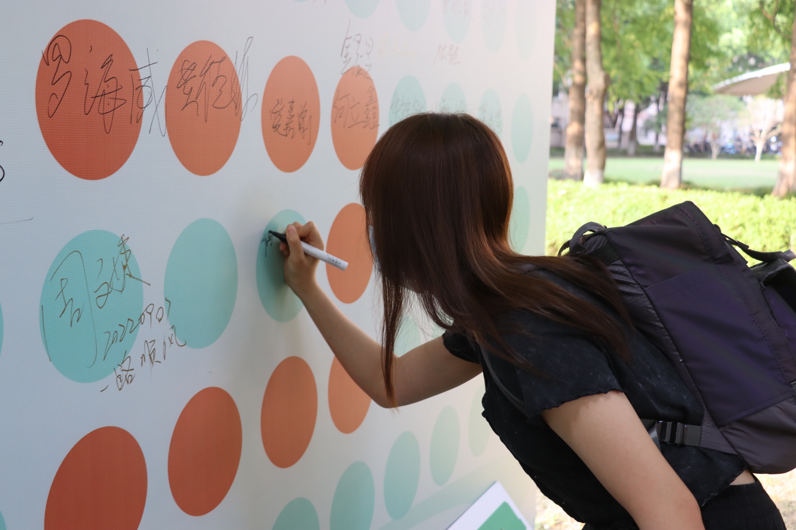 新生至秋千大道的“小火炬服务站”,拍下在上体校园的“第一张留影”,在签名墙上留下自己的“第一次签名”,并在扫码关注了校院多个学生宣传账号后,也将在网络空间融入到数字校园的美好氛围中。