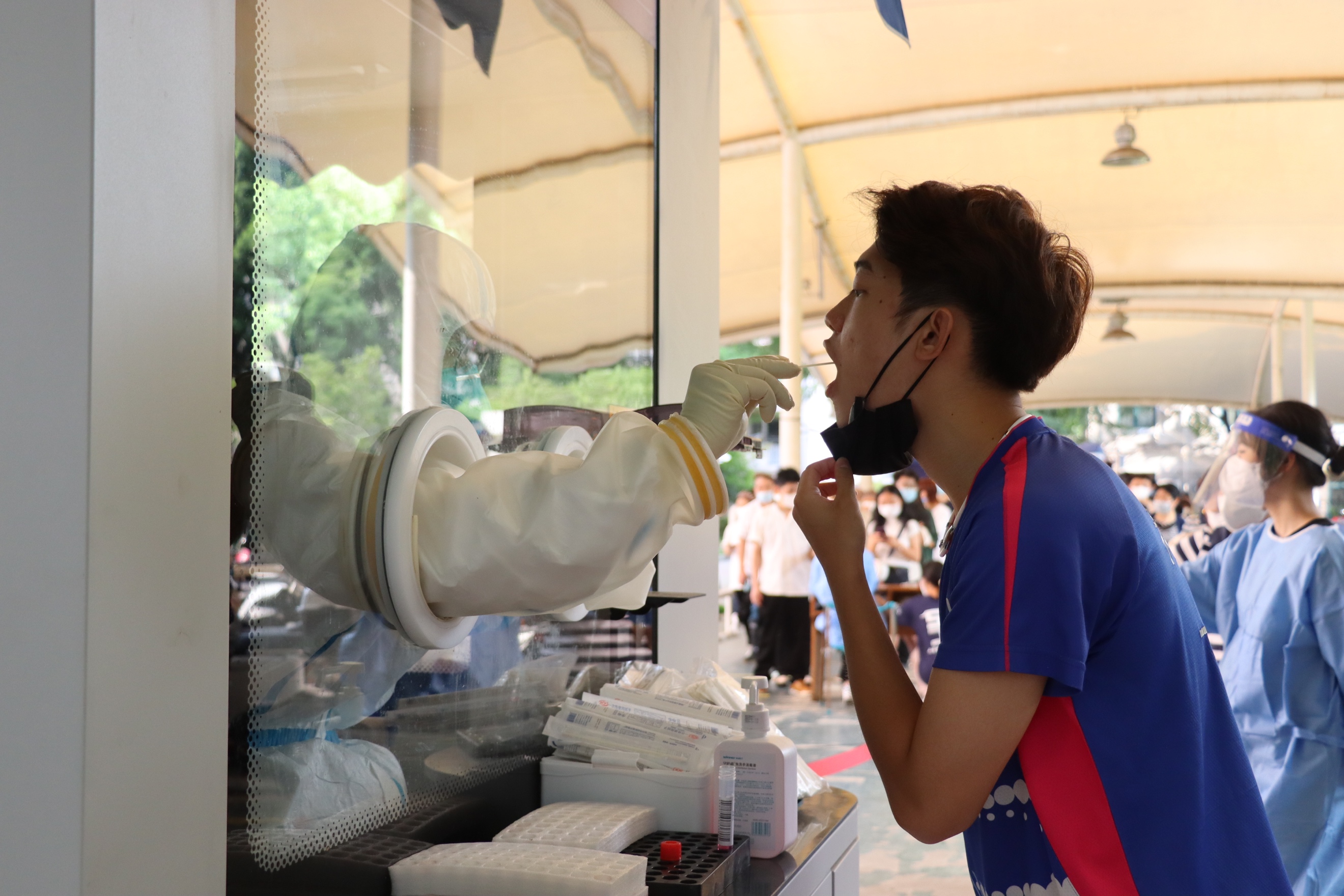 为保障2022级新生顺利入学,学校各部门提前部署、精心筹备、紧密配合、通力协作,全力以赴做好疫情防控。校门外,安保人员与志愿者细致地为新生测体温、查核酸、验绿码、看行程,引导新生们进入校园进行核酸检测,顺利报到入学。