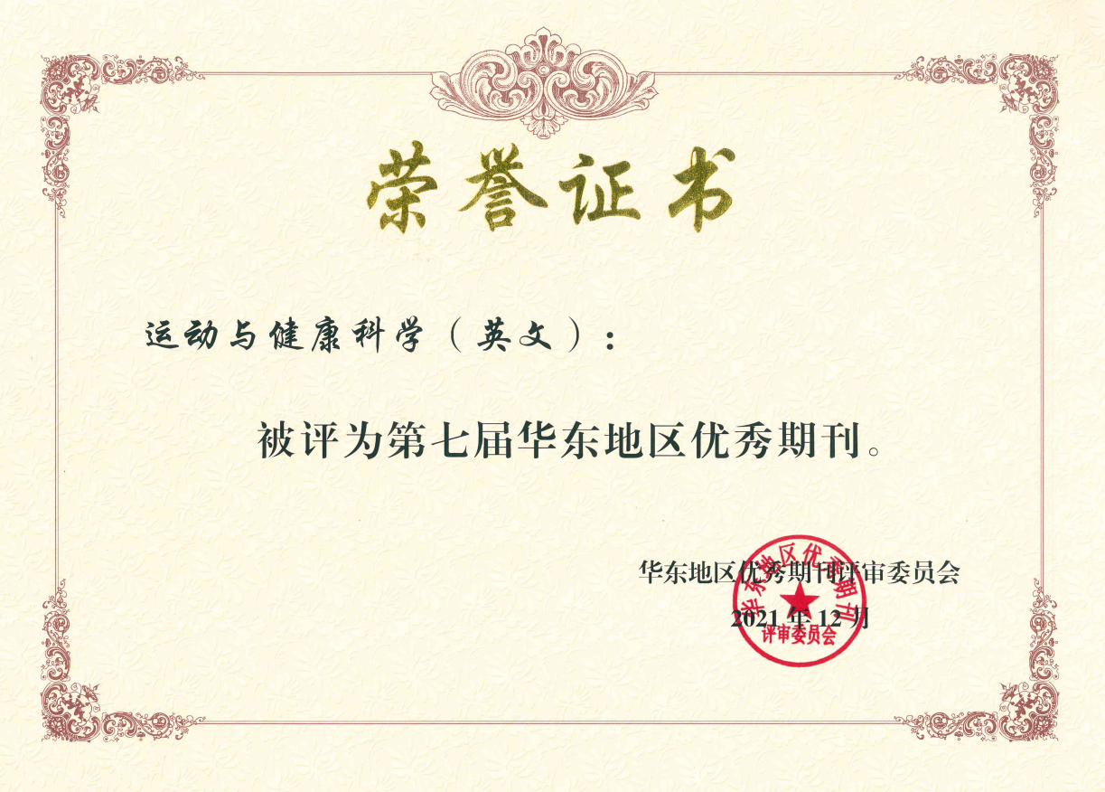 本网讯 近日,第七届华东地区优秀期刊评选结果公布,SUNBET主办的《运动与健康科学(英文)》和《上海体育学院学报》从华东地区近2000种哲学社会科学、自然科学(含学术、科技、通俗、科普等各类)期刊中脱颖而出,双双荣获华东地区“优秀期刊”奖。