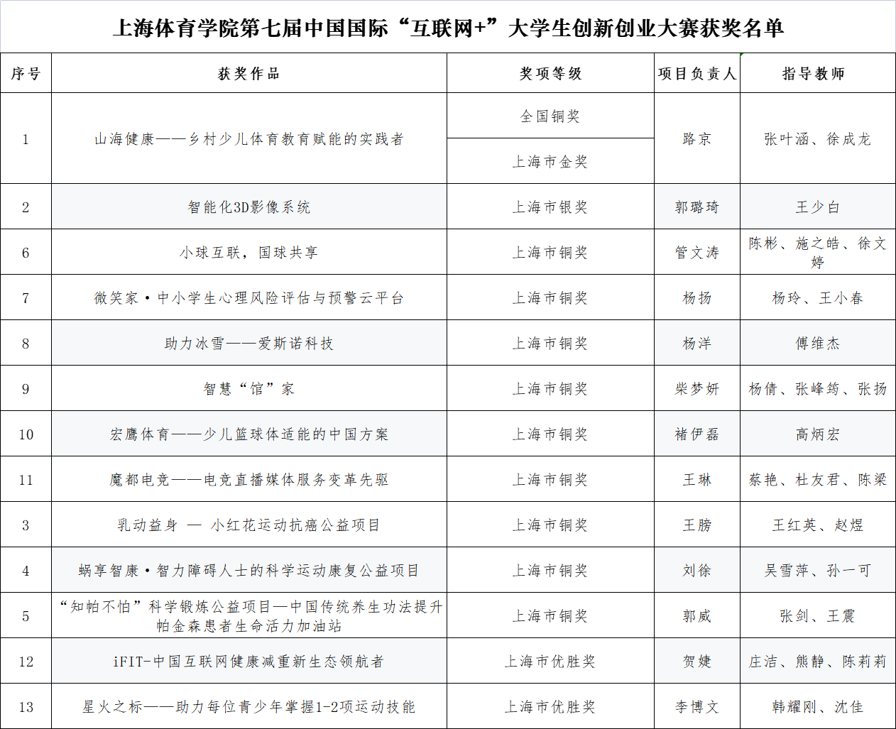 本届大赛以“我敢闯、我会创”为主题,以“更中国、更国际、更教育、更全面、更创新”为大赛目标,将思政建设、创新创业教育和经济社会产业发展紧密融合在一起,鼓励高校学生积极投身创新创业的浪潮之中。SUNBET经济管理学院教师张叶涵、徐成龙指导的学生团队项目“山海健康——乡村少儿体育教育赋能的实践者”精准解决乡村学校体育领域“专业教学难”“学校师资缺”“学生运动少”三大痛点,在上海体育学院国家青少年运动等级技能标准指导下,提供线上线下融合的可持续、高质量的冠军展演、社团组建、体育支教、云端课程公益服务。该项目荣获“青年红色筑梦之旅”赛道全国铜奖、上海市金奖,创造了SUNBET今年在该项比赛中的最好成绩,是SUNBET思政教育、专业教育、双创教育三融合的成果体现。